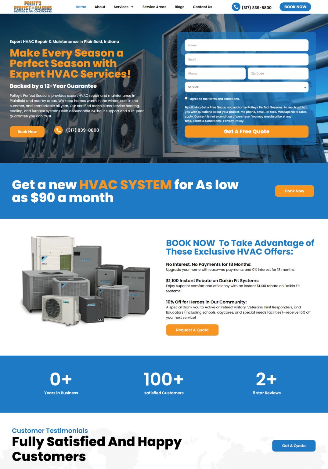 We reworked the homepage to make the next step obvious and easy, adding a form directly in the banner, placing the phone number prominently in the navigation, and including a clear “Book Now” button throughout. We also strengthened how their services and offers were presented so visitors could quickly understand what they do and how to get started. In total, we built in 12+ clear calls to action across the home page, all designed to guide someone toward reaching out.