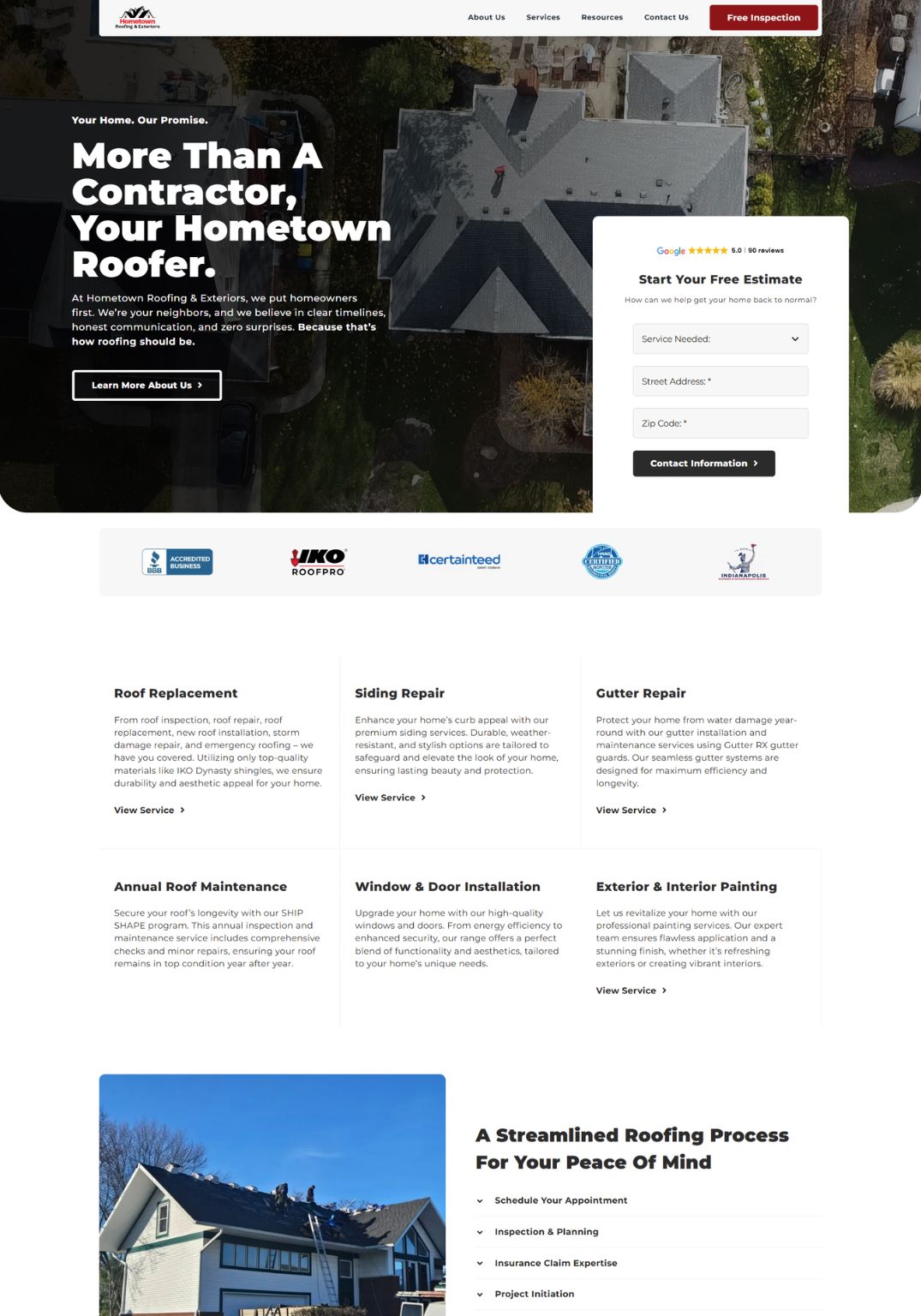 The end result is a cleaner, more focused website that highlights their services, builds trust quickly, and makes it easy for homeowners to request a free inspection and take the next step.